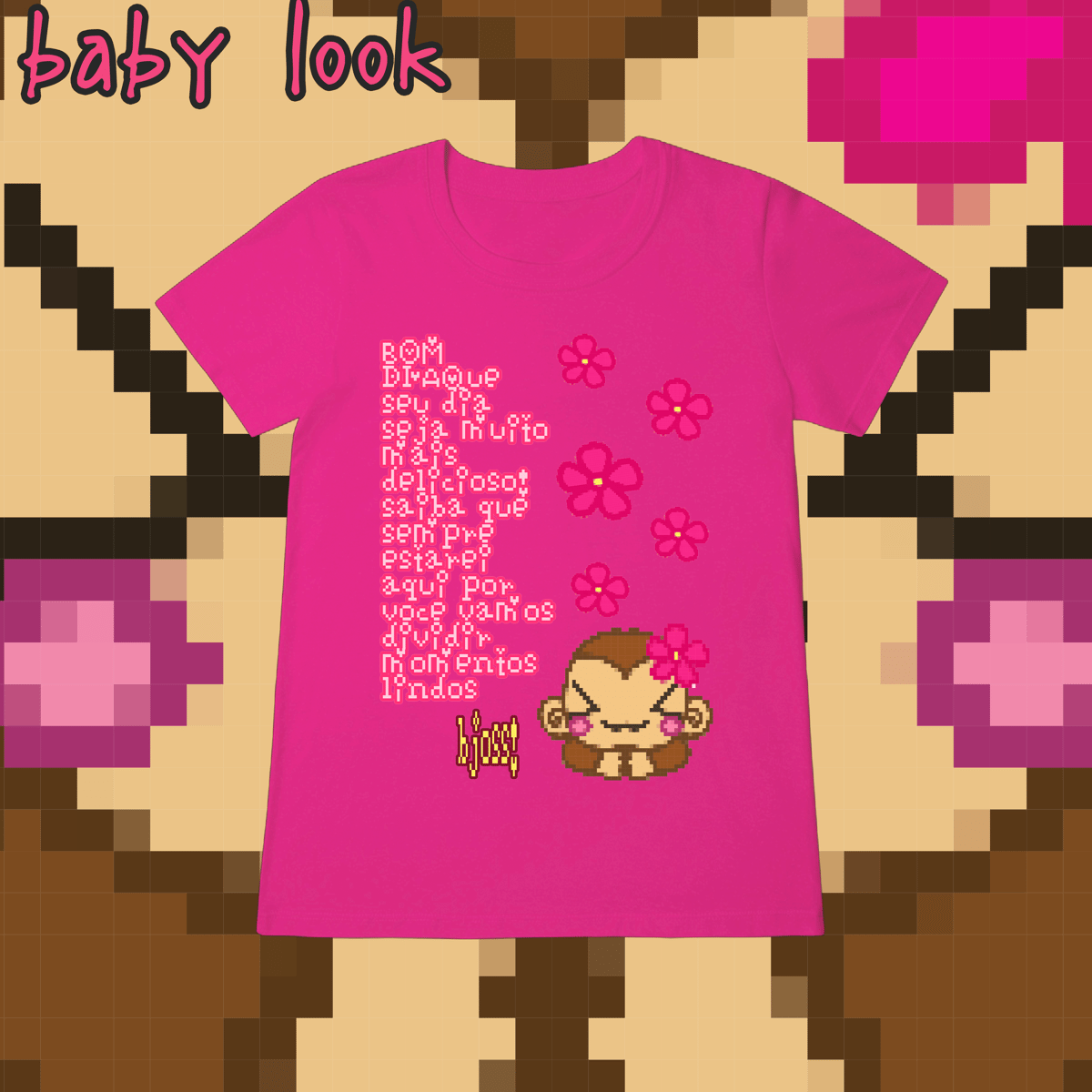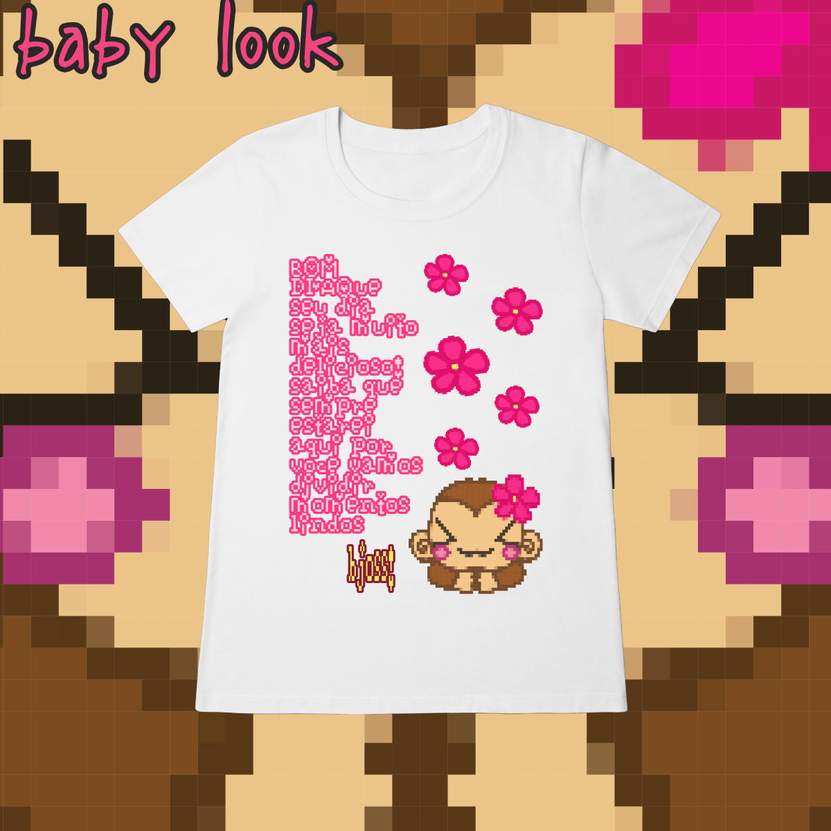 Cores do produto: Como cada tela de computador ou celular tem seu próprio jeito de mostrar cores, então a cor da sua camiseta e da estampa pode ser um pouco diferente do que você viu online.